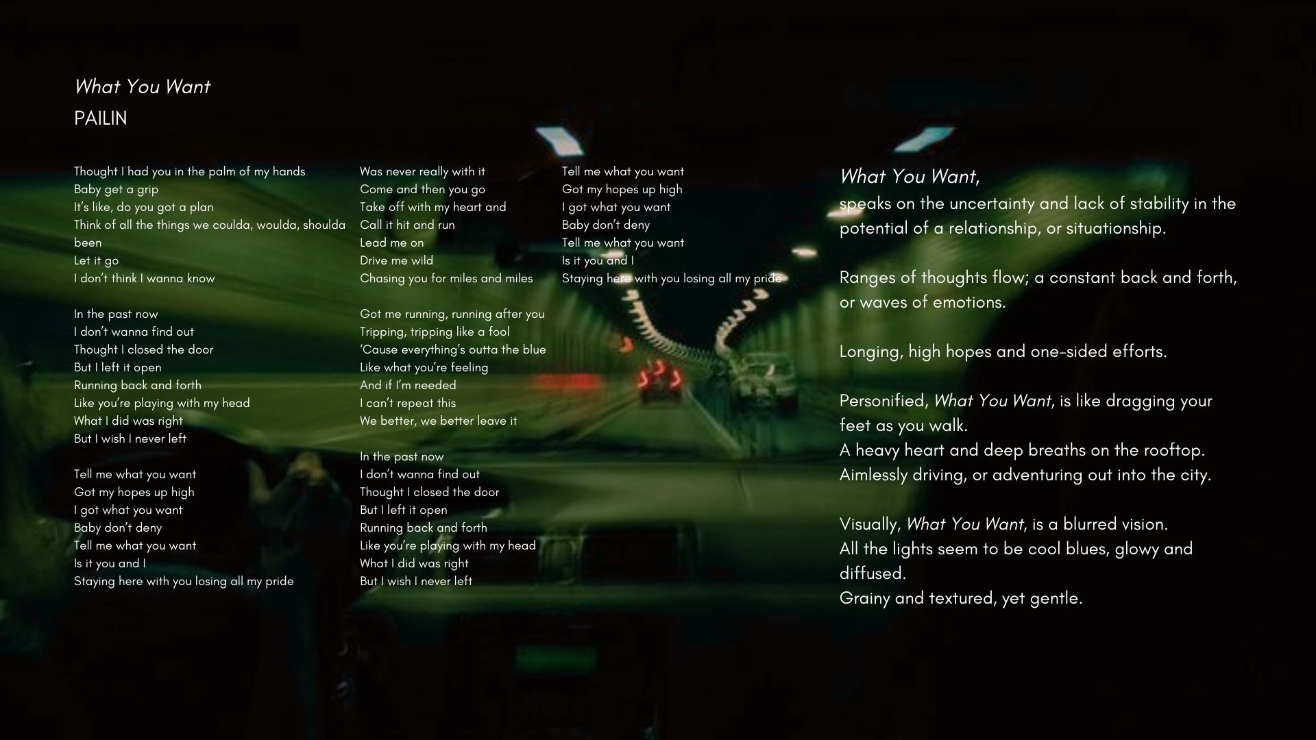 “WHAT YOU WANT”